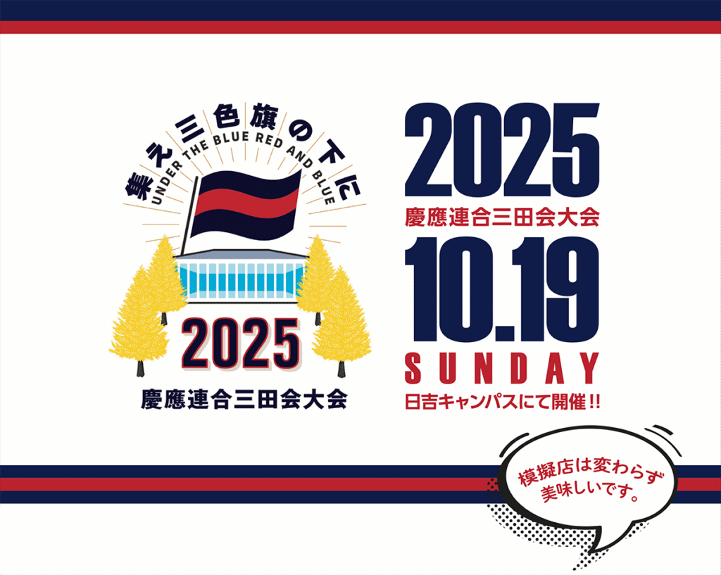 2025年慶應連合三田会大会では「集え三色旗の下に」をテーマに「実際に日吉の丘に集まろう!」というコンセプトで開催いたします。