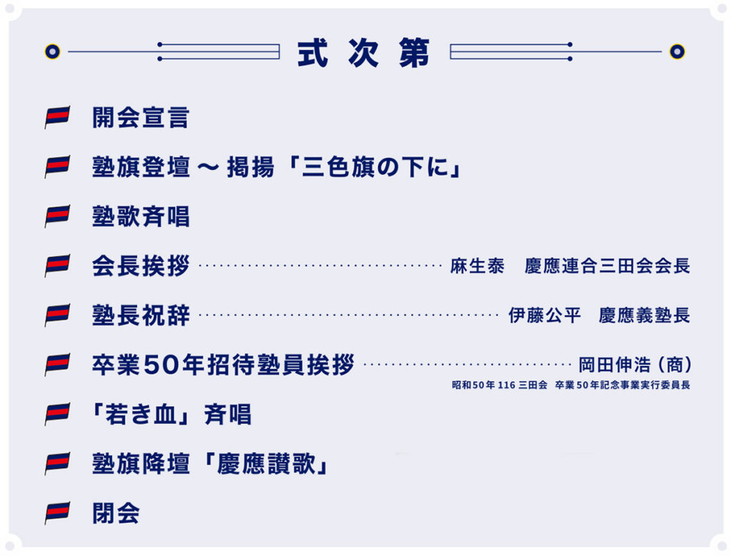 日吉キャンパスで、また三色旗の下で、ご旧友との一日を大いにお楽しみください。