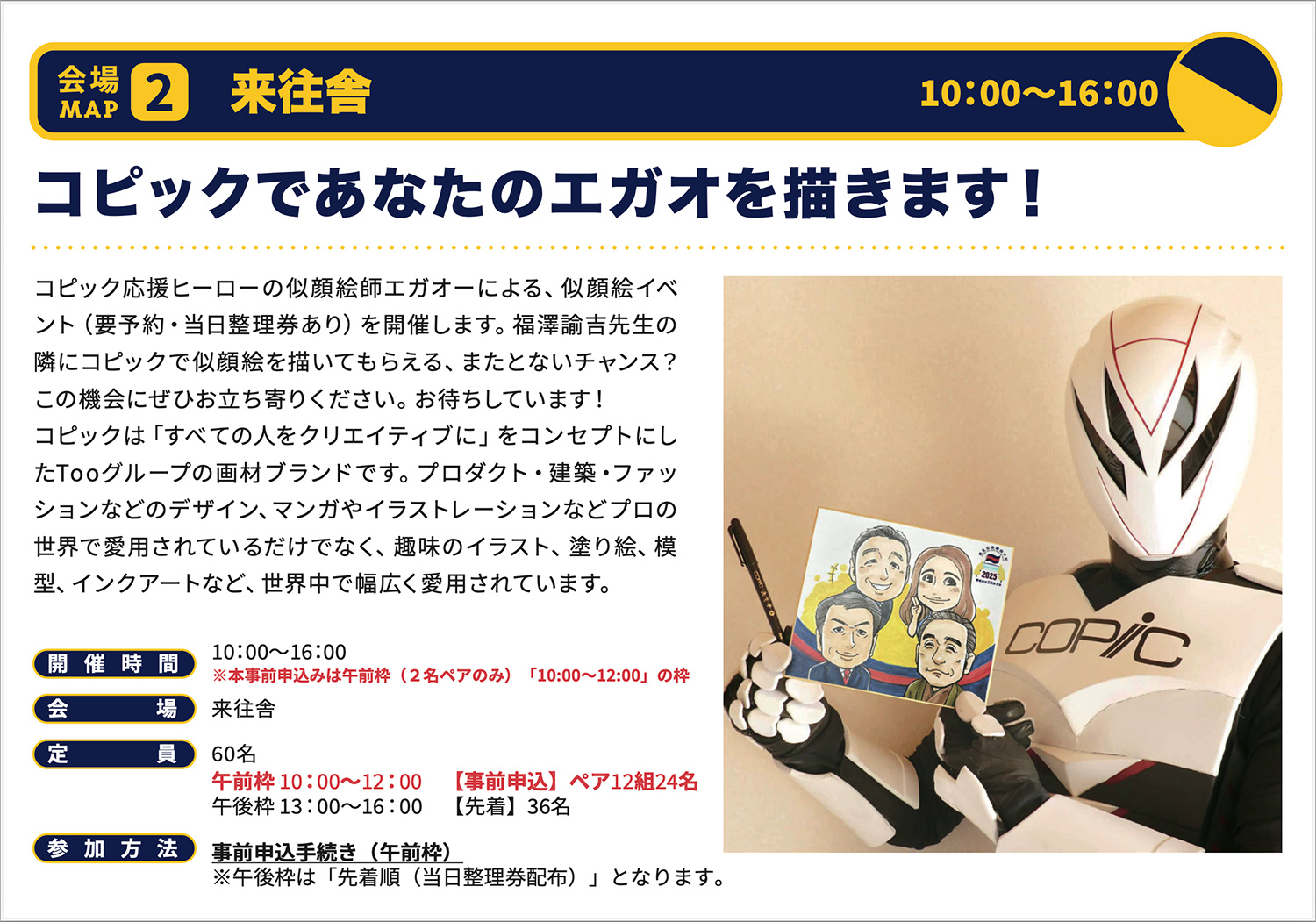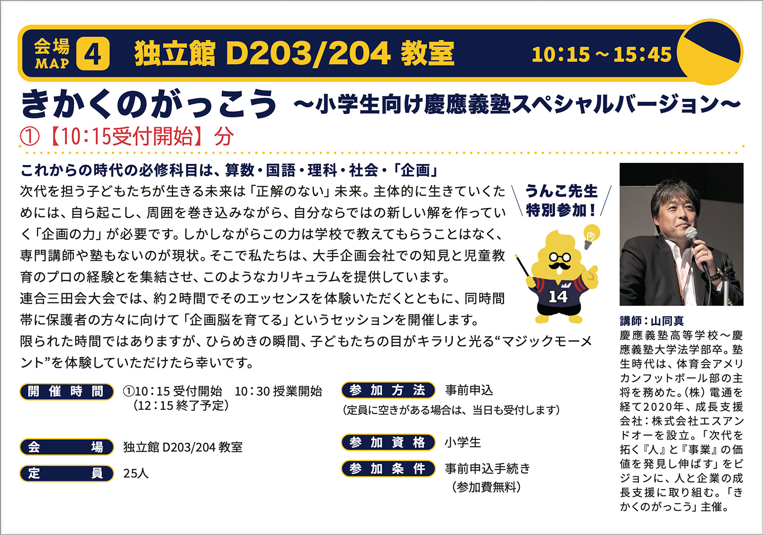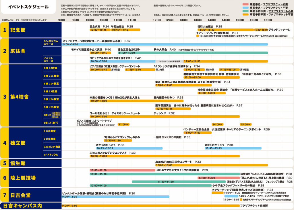 本年大会も、今まで通り現地で受付し、無料で参加いただけるイベントに加え、下記の種類のイベントがあります。