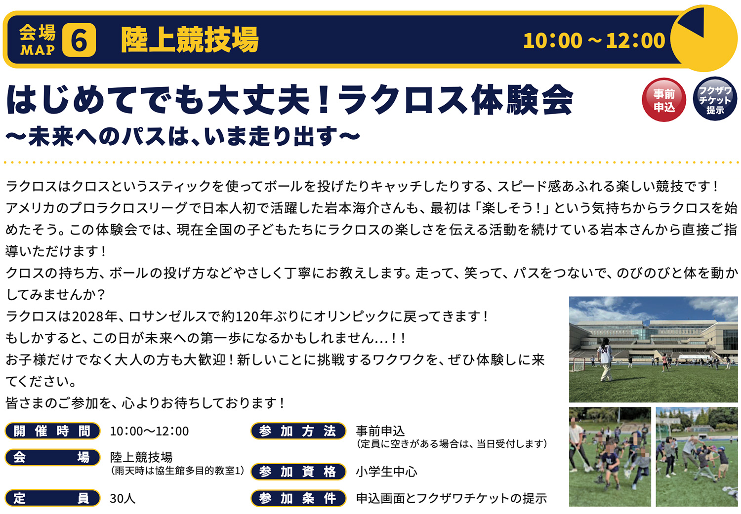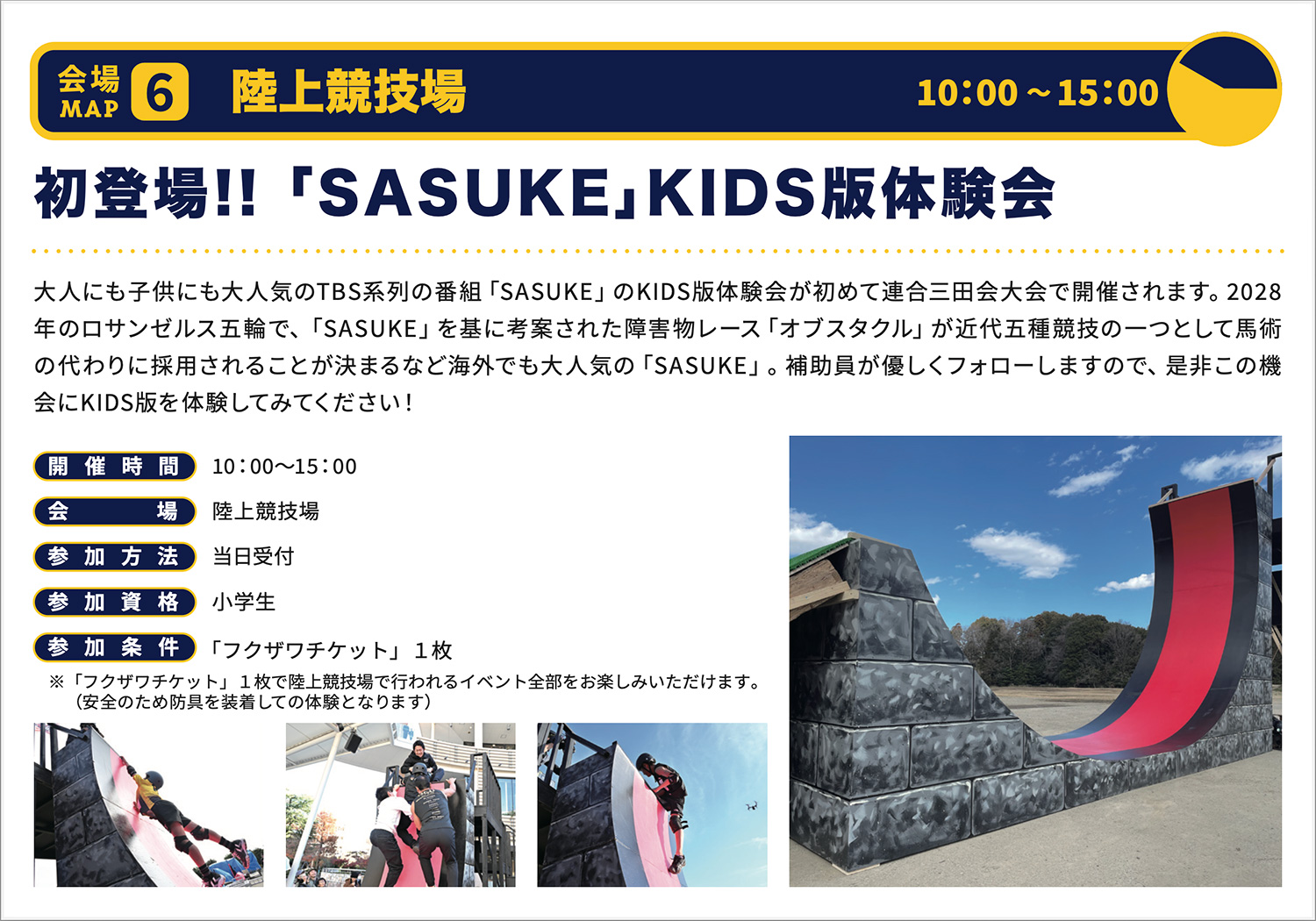 ( SASUKE」KIDS版体験会/フェンシング体験会/陸上競技体験/ラクロス体験会/小中学生フラッグフットボール体験会)