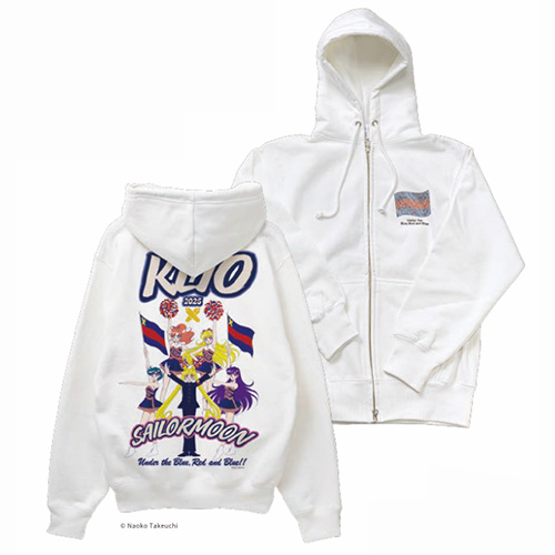 2025連合三田会限定ダブルジップパーカーをM/L 2サイズでご紹介いたします。胸には輝くスワロフスキー®クリスタルを使用した我々の旗である三色旗を。バックプリントには、「美少女戦士セーラームーン」のキャラクターが、メジャレッツの衣装を纏い2025連合三田会に華やぎを加えてくれております。輝き・華やぐこのパーカーを纏ってみたくはないですか??