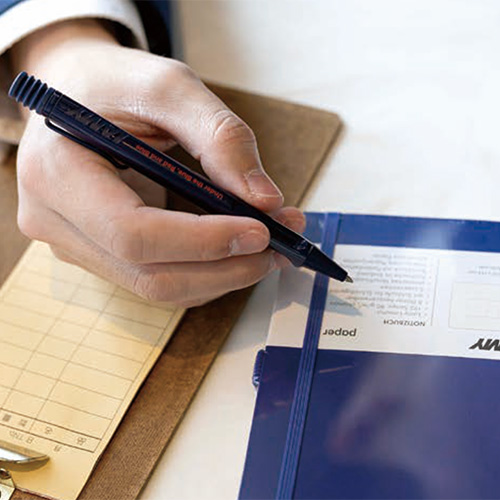 ラミーの洗練された見た目と、ジェットストリームのスルスルな書き心地が魅力。慶應カラー・ネイビー色のA6ノート付きで、使うたびにさりげなく特別な気分にさせてくれる、心ときめくセットです